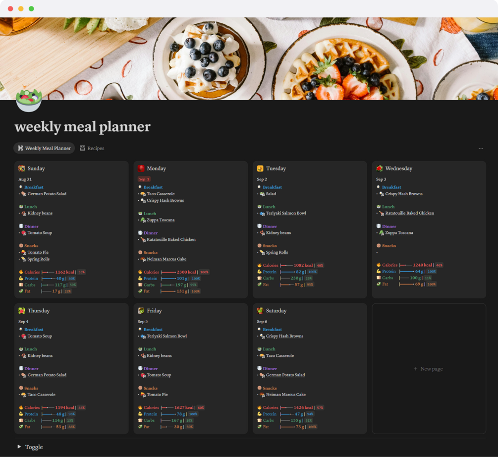 Weekly Meal Planner & Nutrition Tracker Notion Template